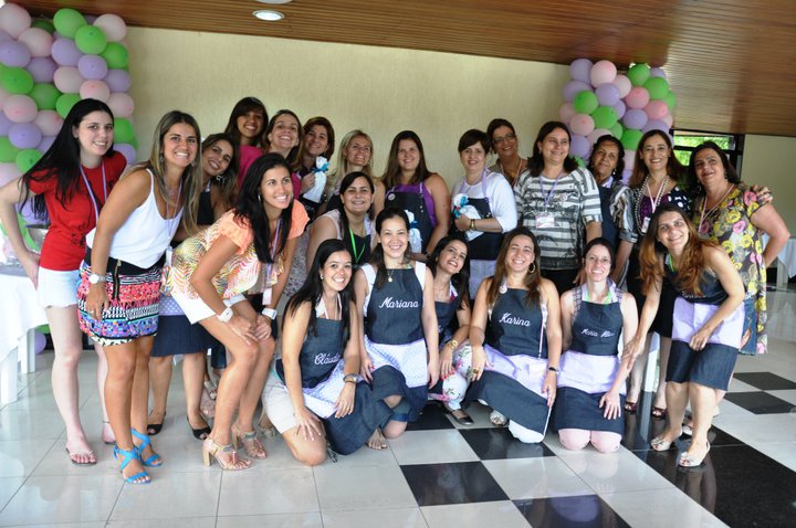 Dentro tinham aventais personalizados. Volto com a foto do grupo e os respectivos aventais.